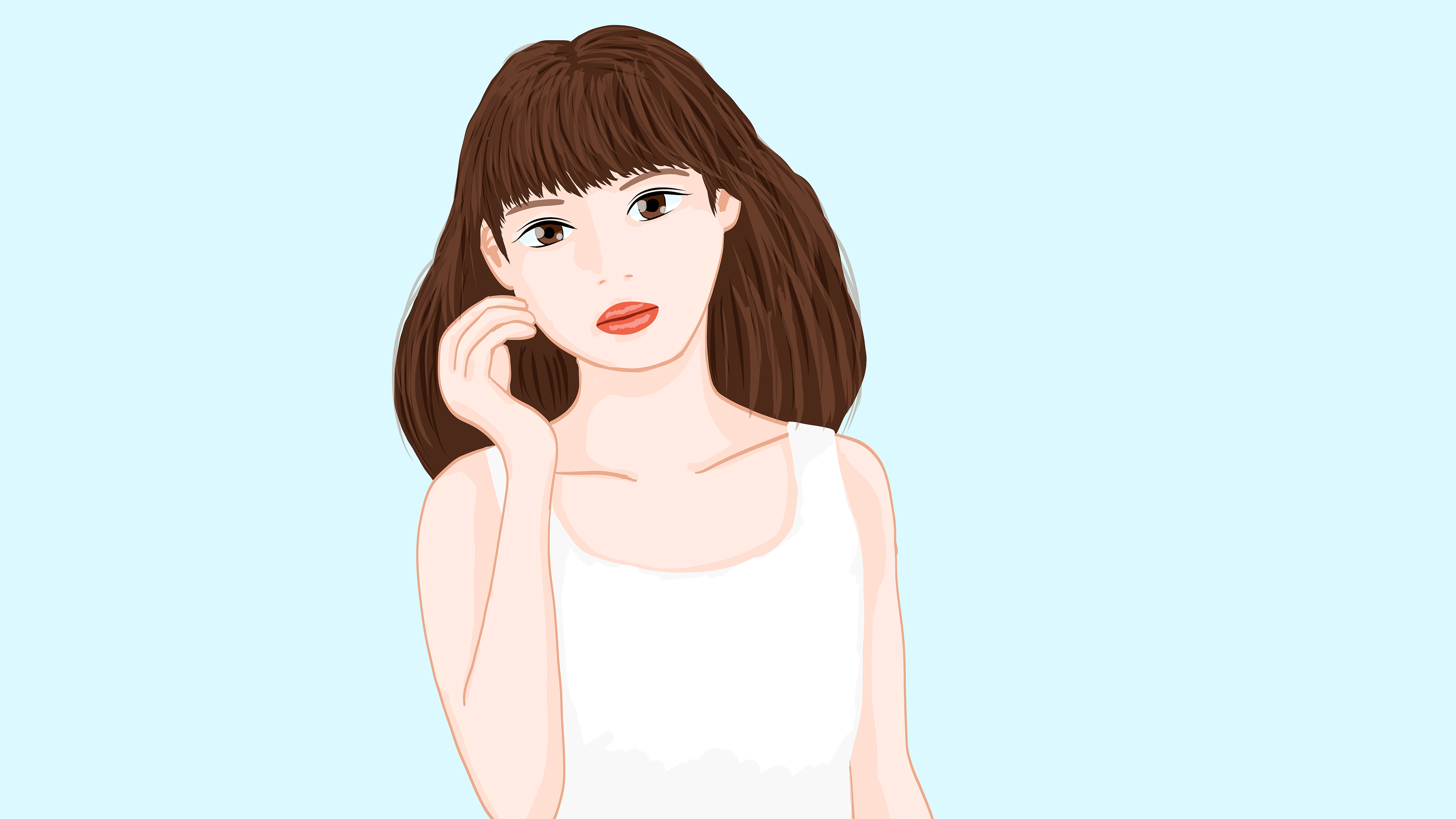 白が眩しい、爽やかな印象の清楚な女性を描いたイラストです。初夏を感じさせます。