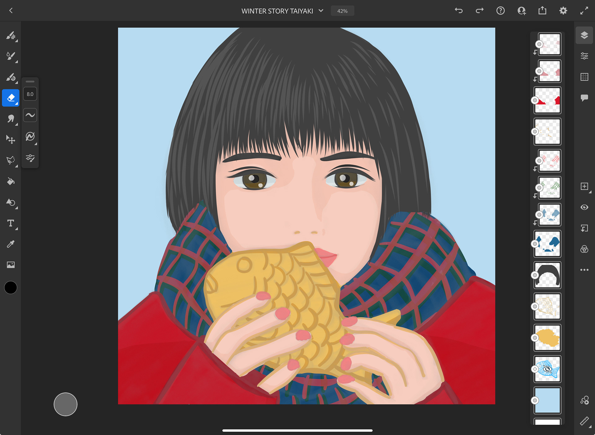 A heartwarming story about how to survive the cold of midwinter is waiting for you! A cute Logic RockStar illustration of a girl stuffing herself with TAIYAKI in the middle of winter. There's a boy you're interested in behind your cute gaze! A moment that foretells the beginning of a new love. This is an illustration full of winter atmosphere. The sight of a cute girl forgetting the cold as she stuffs her face with TAIYAKI warms the hearts of those who see it. As she braved the cold, she saw the boy's smiling face that captivated her. I'm curious about the love story ahead. This winter, how about immersing yourself in the happy feeling of being surrounded by doubts about love? A cute illustration that colors the winter story. Enjoy a heartwarming winter!